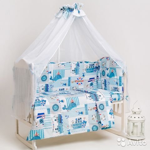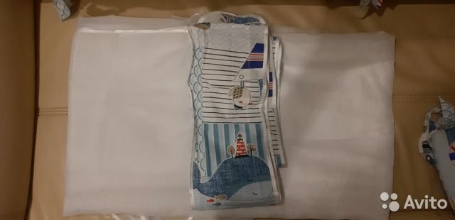 Бортики, наволочка, подушка, простыня б/у в хорошем состоянии, балдахин новый не использовался. Без пододеяльника!!!