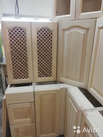 Новый кухонный гарнитур от производителя. Изготавливается из массива хвойных пород дерева Сосна, Ель. Природные экологичные материалы. Фурнитура простая без доводчиков. Стоимость средняя 5000 р за погонный метр верх и низ отдельно. Без столешницы. Более подробная информация по телефону. Доставка. BuyReklama.ru