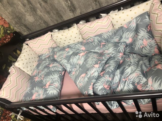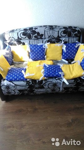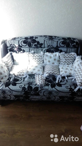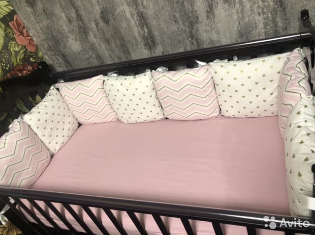 Бортики в детскую кроватку в наличии и под заказ. Размер 30*30 внутри холофайбер. Комплект 12 подушек и простыня на резинке (размер 60*120) . Так же возможен пошив из вашей ткани.
